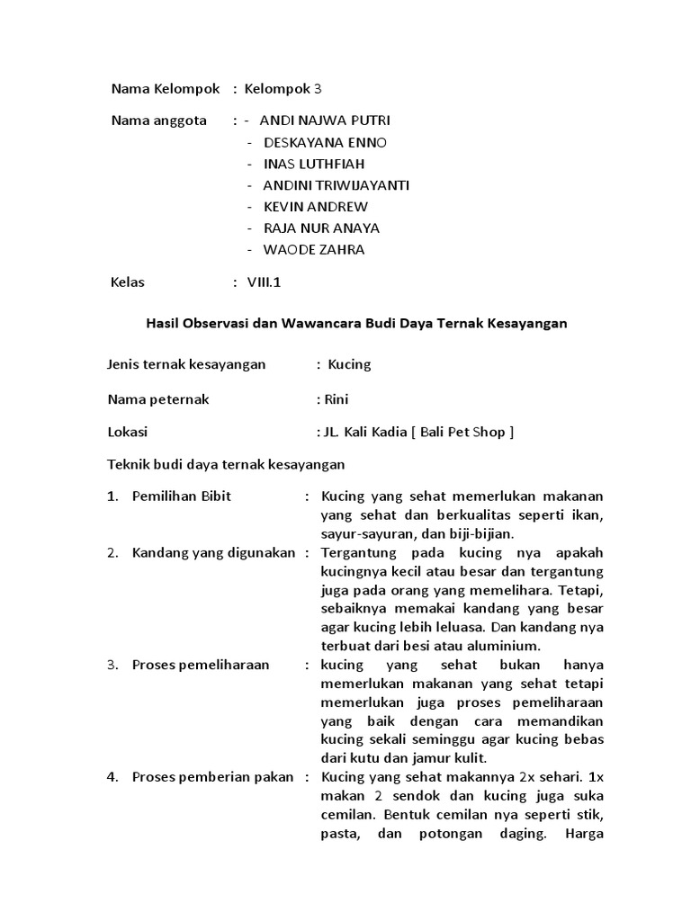 Bab Iii D Contoh Budi Daya Ternak Kesayangan Prakarya Smp