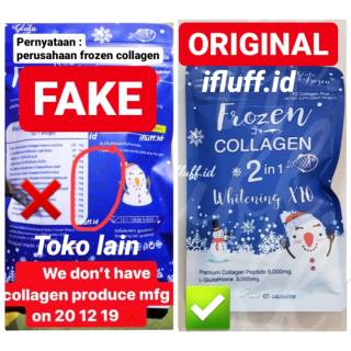 Ciri ciri frozen collagen asli dan palsu. Ciri ciri kemasan produk asli Berbedan dengan frozen palsu kemasan yang asli jika kalian memperhatikan dengan cermat pada kemasan depan bagian bawah akan ada tulisan seperti gambar dibawah ini. Ciri ciri gluta frozen asli dan palsu Kolagen adalah jenis protein alami yang diproduksi dalam tubuh Anda. Perbedaan Frozen Collagen Asli dan Palsu.