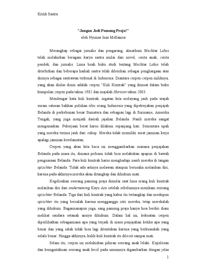 Namun inilah yang akan saya kemukakan di dalam mengkritisi cerpen yang dimuat di Kompas Minggu 5 Desember 2010 berjudul Piano. Contoh soal kritik sastra esai paragraf berikut untuk soal nomor 1 dan 2. Pilihlah materi yang paling anda kuasai 3.